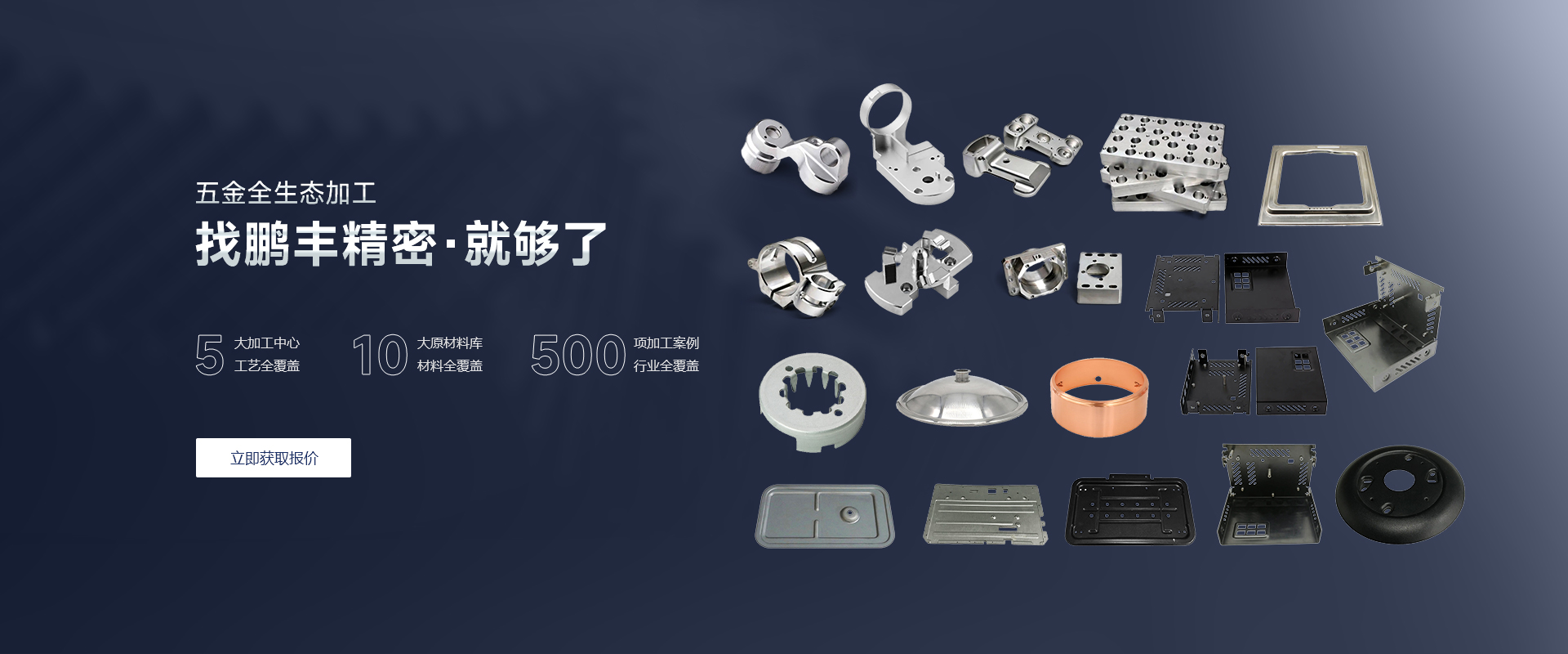 鵬豐精密創建于2011 年,致力于各類五金產品定制、生產。應用行業包括:通信、高端電子、儀器儀表、電器、電腦、相機、燈飾、家具、手機、包裝禮品、汽車、玩具等。經過多年發展,現已成為粵港澳大灣區生產各類五金產品中規模較大,產品齊全的五金制造廠家。